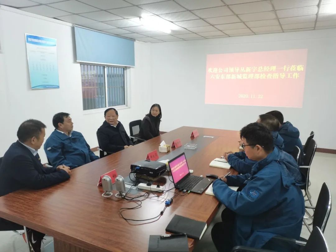 11月22日,公司主要負責(zé)人叢新宇到六安市東部新城監(jiān)理部調(diào)研指導(dǎo)工作。水電中心有關(guān)負責(zé)人員陪同調(diào)研。