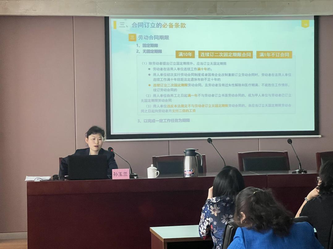 此次培訓(xùn)由中科大法學(xué)碩士、北京大成(合肥)律師事務(wù)所律師孫玉蘭授課。會(huì)上,講師闡述了《勞動(dòng)合同法》的出臺背景及主要內(nèi)容,并結(jié)合具體案例,多角度闡述了企業(yè)在勞動(dòng)爭議中的熱點(diǎn)問題。通過對勞動(dòng)合同的訂立、勞動(dòng)合同的履行和變更、勞動(dòng)合同的解除和終止等法律要點(diǎn)的解析,進(jìn)一步強(qiáng)化了員工對勞動(dòng)法規(guī)知識體系的認(rèn)知。