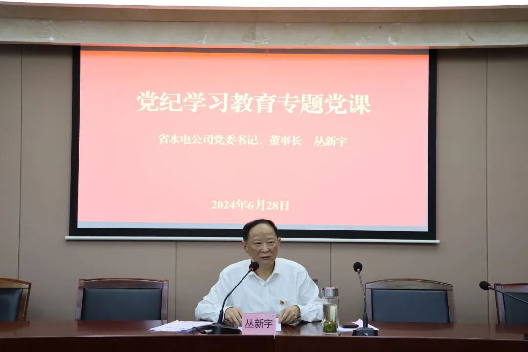 6月28日下午,公司黨委召開黨紀(jì)學(xué)習(xí)教育專題黨課報(bào)告會(huì)。公司黨委書記、董事長(zhǎng)叢新宇作專題黨課報(bào)告。會(huì)議由公司黨委委員、副總經(jīng)理、職工董事劉燁主持。公司領(lǐng)導(dǎo)班子成員參加會(huì)議。