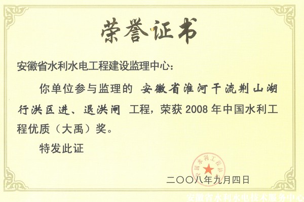當(dāng)前位置: 首頁(yè) >>企業(yè)文化 >>企業(yè)榮譽(yù) >>安徽省淮河干流荊山湖行洪區(qū)進(jìn)、退洪閘工程(大禹)獎(jiǎng)