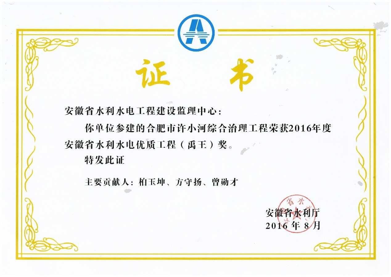 當(dāng)前位置: 首頁 >>企業(yè)文化 >>企業(yè)榮譽(yù) >>合肥市許小河綜合治理工程(禹王))獎(jiǎng)