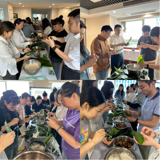 活動現(xiàn)場,公司將提前準(zhǔn)備好的糯米、紅棗、粽葉等材料依次擺放,大家歡聚一堂,一邊包著粽子,一邊相互分享端午佳節(jié)的歷史故事和風(fēng)俗習(xí)慣。在食堂工作人員的指導(dǎo)下,一雙雙勤勞的雙手在一片片翠綠的粽葉間來回穿梭,大家都化身成為包粽子“高手”,興奮的展示著自己的“作品”,很快一個個香甜誘人的粽子就擺滿了餐盤。