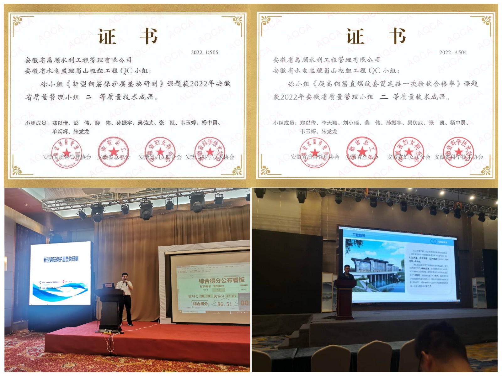 2022年7月19日至23日,由安徽省質(zhì)量管理協(xié)會(huì)、安徽省總工會(huì)、安徽省婦女聯(lián)合會(huì)及安徽省科學(xué)技術(shù)協(xié)會(huì)聯(lián)合主辦的2022年安徽省質(zhì)量管理小組成果交流會(huì)暨QC小組團(tuán)體標(biāo)準(zhǔn)培訓(xùn)在安徽黃山隆重召開,共有來自全省16個(gè)市,10多個(gè)行業(yè)推薦的QC小組成果515個(gè)參與此次交流會(huì)的評(píng)比。禹順公司蜀山樞紐工程QC小組以問題解決型課題《提高鋼筋直螺紋套筒連接一次驗(yàn)收合格率》和創(chuàng)新型課題《新型鋼筋保護(hù)層墊塊研制》首次參與安徽省質(zhì)量管理小組成果交流,經(jīng)過三天緊張而又激烈的專家評(píng)審和答辯,最終榮獲兩個(gè)二等獎(jiǎng)的優(yōu)異成績(jī)。